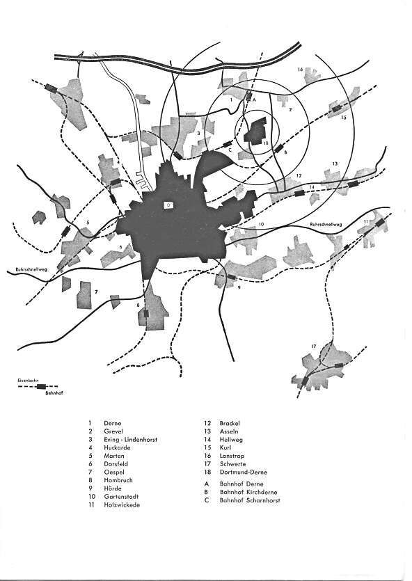 Es wird auf Anregung von Mr. James W. Butler, Leiter der M.S.A. Mutual Secturiry Agency (Amt für gegenseitige Sicherheit), Wohnungsbauabteilung, als zukunftsweisende Mustersiedlung durchgeführt werden. Während dabei etwa 1000 Wohnungen, in Form von Eigenheimen, voll aus Marshallplangeldern finanziert werden, soll eine große Anzahl weiterer Wohnungen im Rahmen des deutschen Bergarbeiterwohnungsbauprogramms gebaut werden, sowie ein Ladenzentrum, Kirche, Schule, Kindergarten Ledigenheim, Kino, Cafe usw. Eine zukünftige Erweiterung der Siedlung ist auch vorgesehen worden, sodaß hier ein ganz neuer Stadtteil Dortmunds mit etwa 2000 Wohnungen entstehen wird. Die Stadt Dortmund hat für die jetzt in Angriff genommene Siedlung in großzügiger Weise das Gelände zur Verfügung gestellt und die Finanzierung der Aufschließungskosten übernommen.